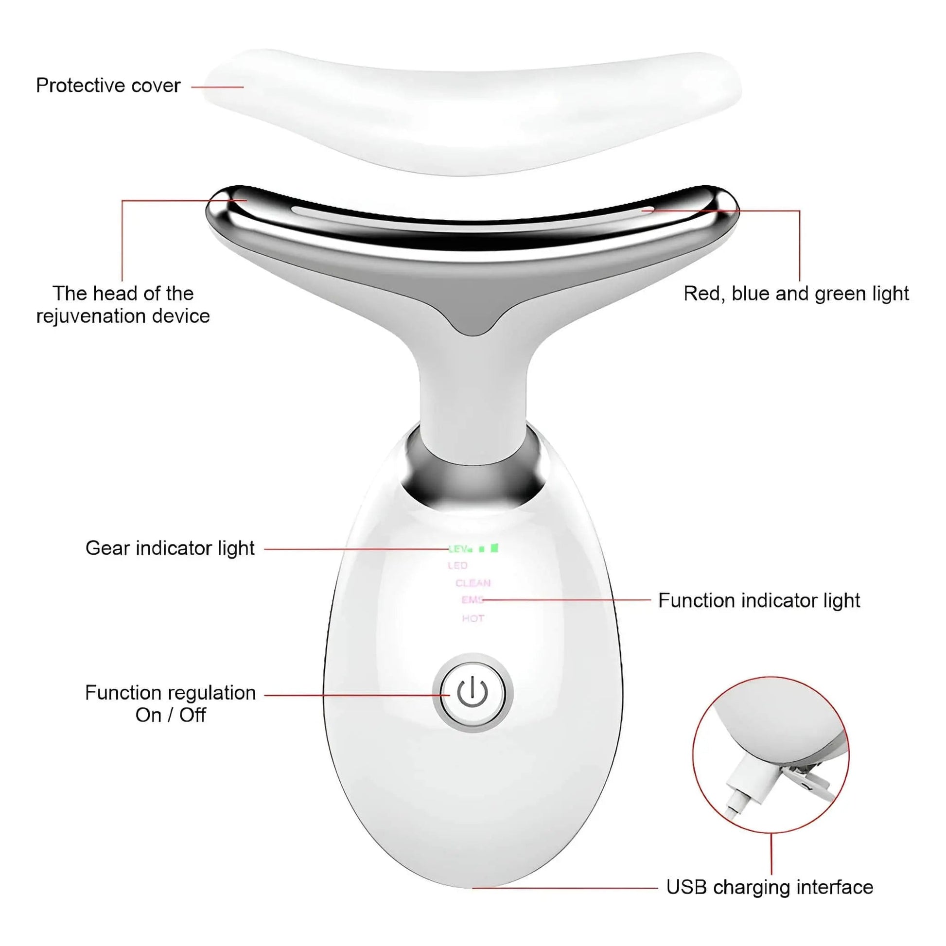 Experience the ultimate self-care with this face light therapy device featuring soothing vibration, warm massage, and 7-color LED light therapy. Its ergonomic dolphin-tail design perfectly fits your jawline, neck, shoulders, and more for a relaxing, rejuvenating glow.